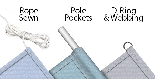 • Single-Sided single piece maximum size 10’ x 145’ w/o pocket and 9.5’ x 145’ w/ pocket ; Double-Sided banners maximum size 9.5’ x 145.